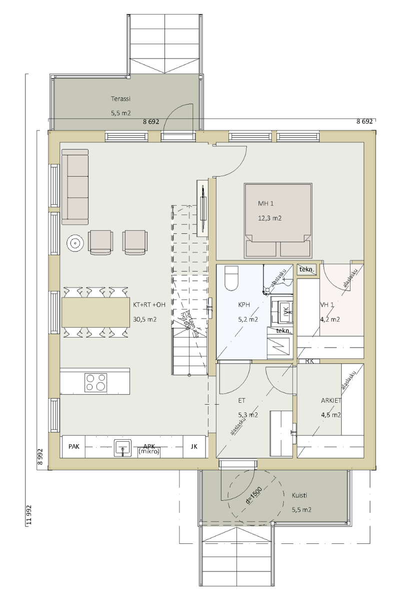 Jokainen pohjakuva voidaan toteuttaa peilikuvana. Tutustu lisää talomalliemme muokattavuuteen täällä.