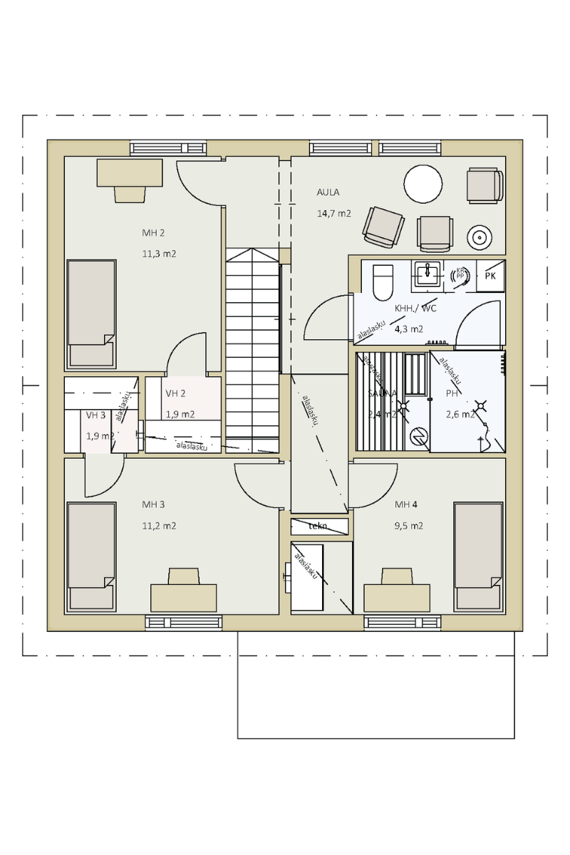 Magnolia on saumaton talomalli ja se kuuluu NopsaKoti-mallistoomme. Tässä modernissa 2-kerroksisessa talossa on toimiva pohjaratkaisu, joka tekee asumisesta sujuvaa ja viihtyisää. Eteinen ja vaatehuoneet tarjoavat muun muassa runsaasti säilytystilaa. Eteisestä pääsee valoisaan oleskelutilaan, jossa keittiö, ruokailutila ja olohuone muodostavat yhtenäisen kokonaisuuden. Alakerrassa on lisäksi makuuhuone ja kylpyhuone, kun taas yläkerrasta löytyy kolme makuuhuonetta, sauna, pesuhuone ja kodinhoitohuone sekä viihtyisä aula yhteiseen oleiluun.