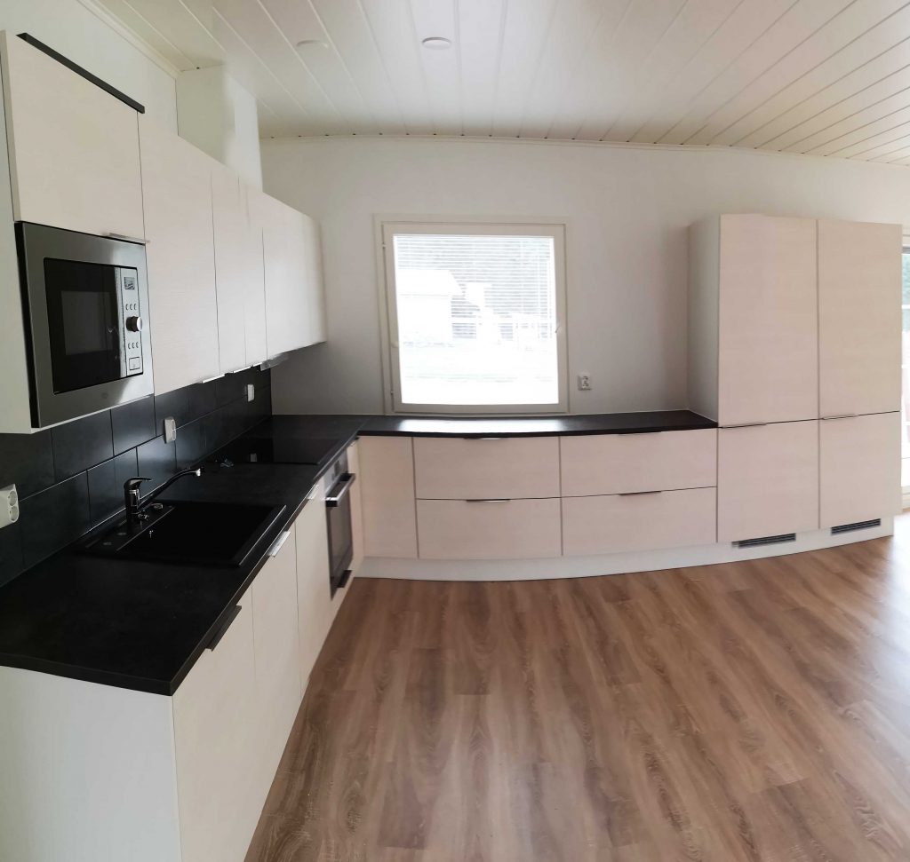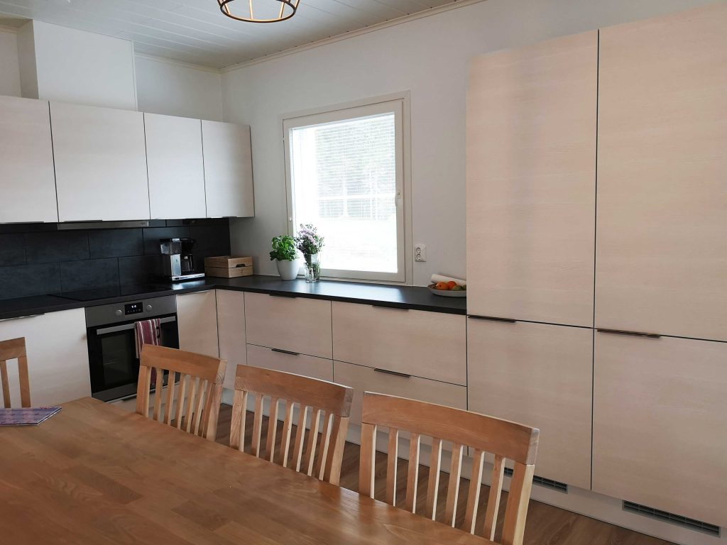 ”Kaupat vanhasta talosta oli jo nimeä ja kuntotarkastusta vaille valmis. Talossa oli kuitenkin valesokkeli, joka olisi aiheuttanut pieniä riskejä. Laskettuamme kokonaishintaa remontteineen totesimme saavamme samalla budjetilla uuden meille rakennetun talon, jos kokonaisuus suunniteltaisiin järkevästi.”